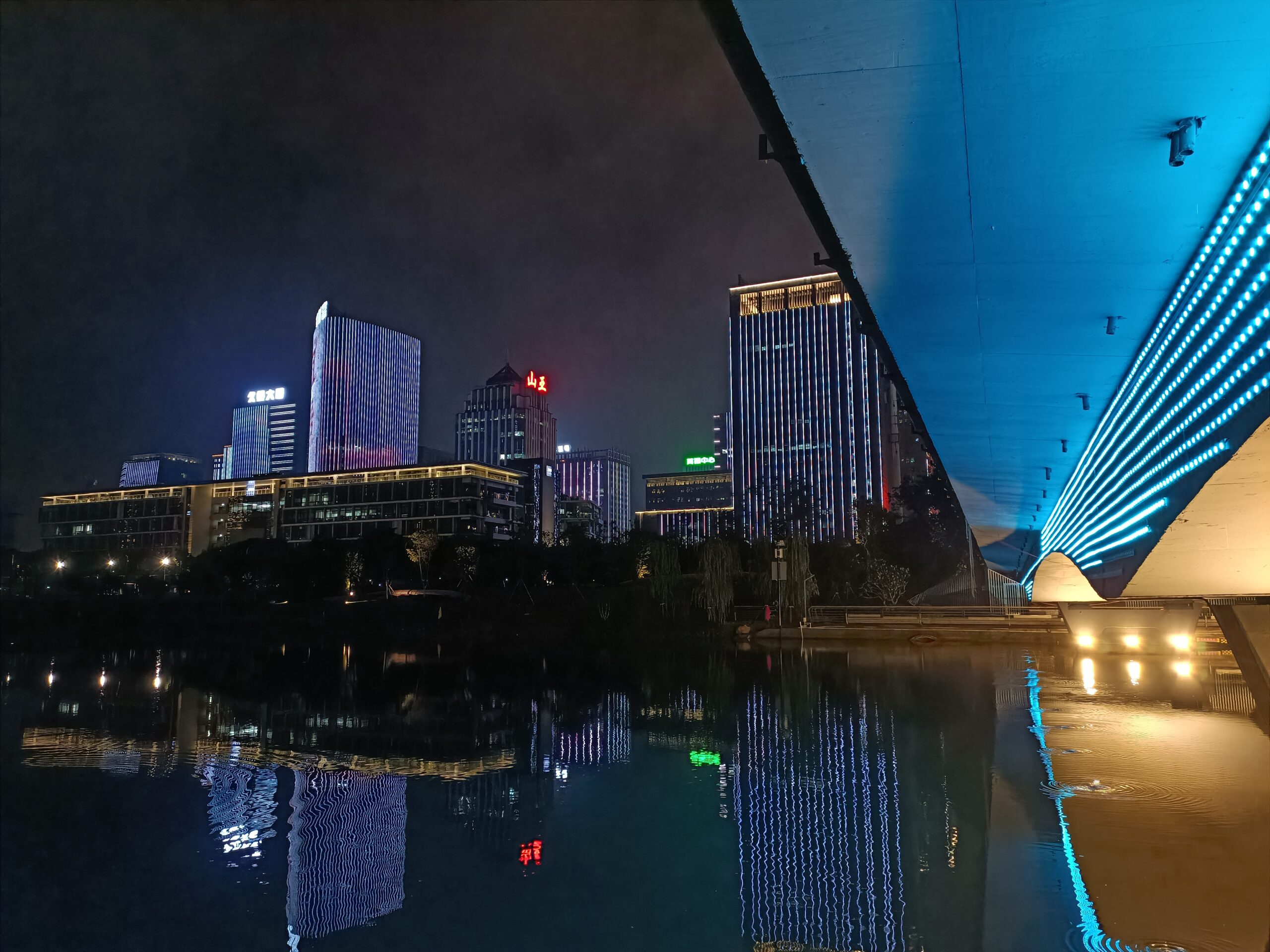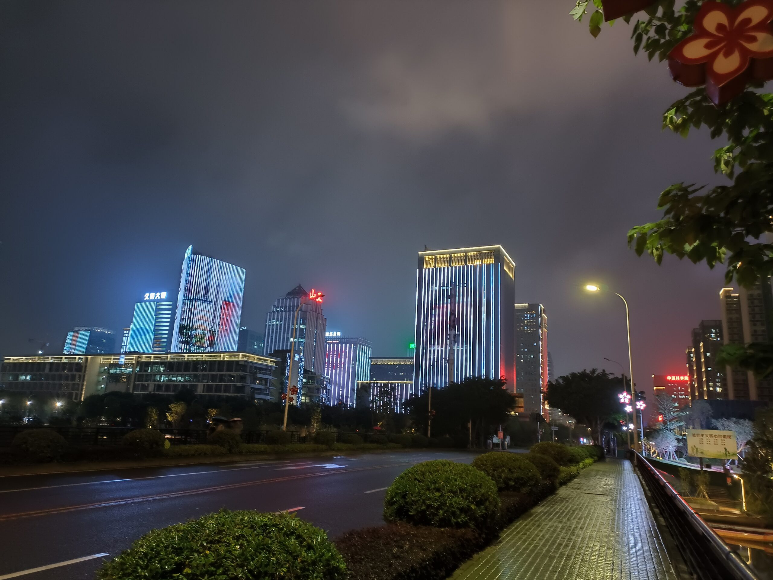 主相机的摄影体现方面,仍然尽职尽业,硬件组合上,分别为 1300 万像素长焦镜头(f/2.4 光圈,支撑 5 倍混合光学变焦)、5000 万像素广角主摄(索尼 IMX766 传感器、f/1.8 光圈、支撑 OIS 光学防抖)、1600 万像素超广角镜头(f/2.2 光圈、119° 视场角)以及 200 万像素微距镜头,所以软件摄影体会有所保证。在光线好的情况下,成像本质高,能够拍得不错的相片。咱们首要调查光线欠安情况下的夜景摄影,发现其还能获得不错的成片,具有极佳高光限制才能,暗部细节,物体的线条和概括以及噪点控制都不错。